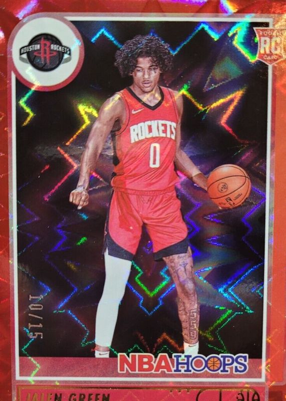 The Jalen Green 2021 Hoops #218 Red Explosion /15 Rookie card in Raw condition has not changed in price in the last 30 days and was last sold for $83.00 .