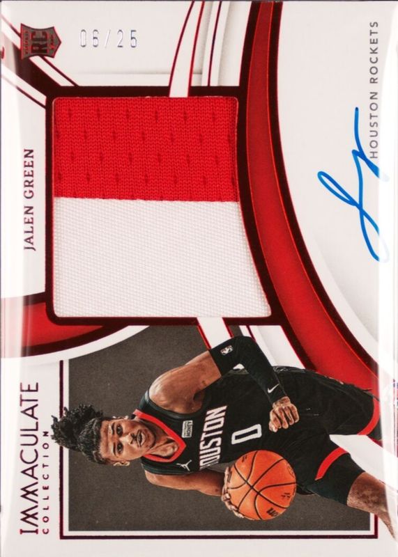 This card is 1 of 10 Jalen Green's card variations in the 2021 Immaculate set being tracked by Sports Card Investor, including Premium Patch Autographs (/50), Premium Patch Autographs - Gold (/10), Rookie Patch Auto - Jersey Number (/1), Rookie Patch Auto /99, and Rookie Patch Auto - Red /49.