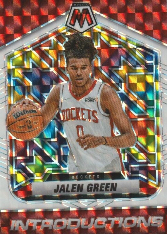 The Jalen Green 2021 Mosaic #1 Introductions - White /25 Rookie card in Raw condition has not changed in price in the last 30 days and was last sold for $102.50 .