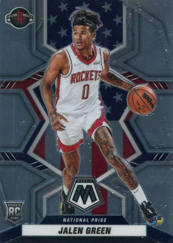 The Jalen Green 2021 Mosaic #259 National Pride Rookie card in Raw condition has moved up $0.01 (+1.0%) in the last 30 days and was last sold for $1.00 .