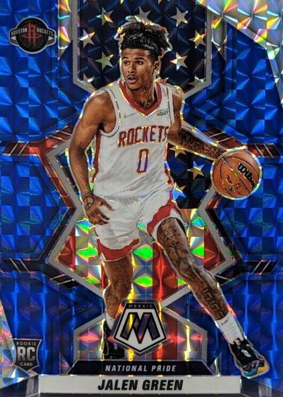 The Jalen Green 2021 Mosaic #259 National Pride - Blue /99 Rookie card in Raw condition has not changed in price in the last 30 days and was last sold for $4.00 .