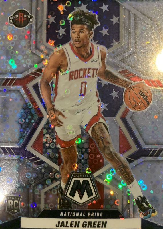 The Jalen Green 2021 Mosaic #259 National Pride - Fast Break Rookie card in Raw condition has not changed in price in the last 30 days and was last sold for $2.25 .