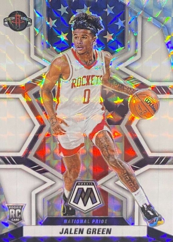 The Jalen Green 2021 Mosaic #259 National Pride - White /25 Rookie card in Raw condition has not changed in price in the last 30 days and was last sold for $69.99 .