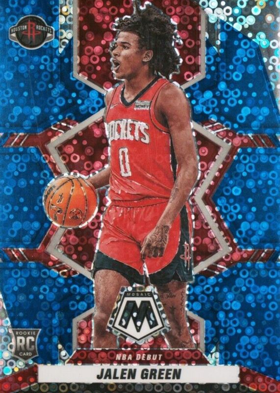 The Jalen Green 2021 Mosaic #262 NBA Debut - Fast Break Blue /85 Rookie card in Raw condition has not changed in price in the last 30 days and was last sold for $19.00 .