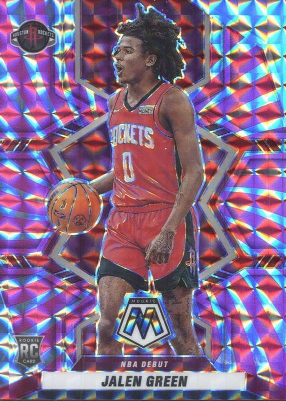 The Jalen Green 2021 Mosaic #262 NBA Debut - Pink Swirl /11 Rookie card in Raw condition has not changed in price in the last 30 days and was last sold for $126.00 .