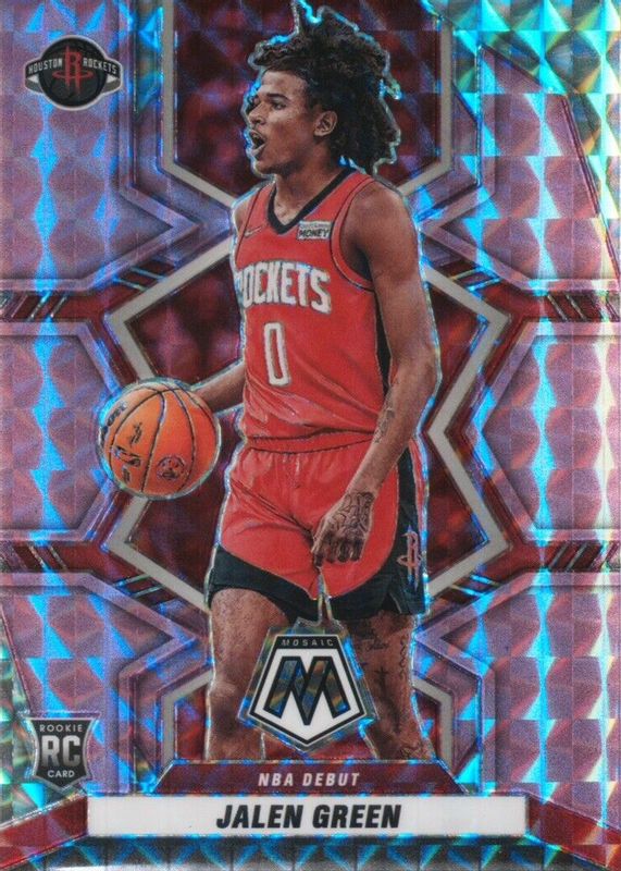 The Jalen Green 2021 Mosaic #262 NBA Debut - Purple /49 Rookie card in Raw condition has not changed in price in the last 30 days and was last sold for $29.00 .