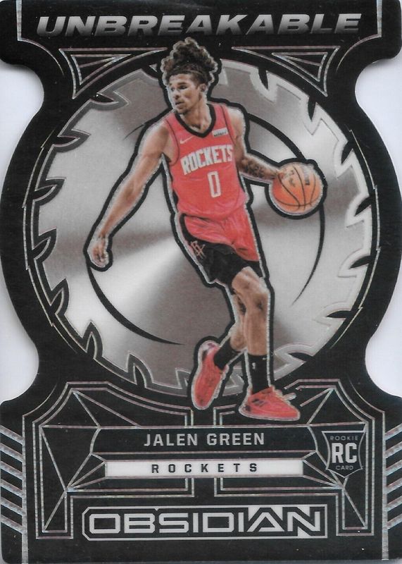 The Jalen Green 2021 Obsidian #16 Unbreakable /(SSP) Rookie card in Raw condition has not changed in price in the last 30 days and was last sold for $15.50 .
