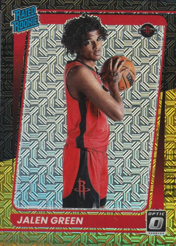 This card is 1 of 106 Jalen Green's card variations in the 2021 Optic set being tracked by Sports Card Investor, including Base, Blue Pulsar, Blue Velocity, Checkerboard, and Choice.