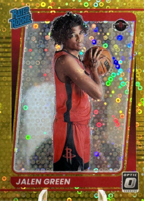 This card is 1 of 106 Jalen Green's card variations in the 2021 Optic set being tracked by Sports Card Investor, including Base, Blue Pulsar, Blue Velocity, Checkerboard, and Choice.
