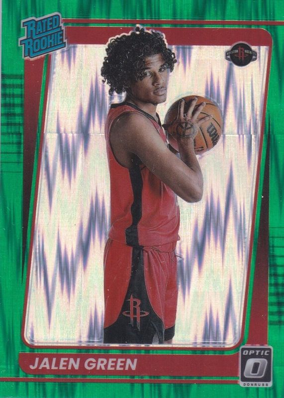 This card is 1 of 106 Jalen Green's card variations in the 2021 Optic set being tracked by Sports Card Investor, including Base, Blue Pulsar, Blue Velocity, Checkerboard, and Choice.