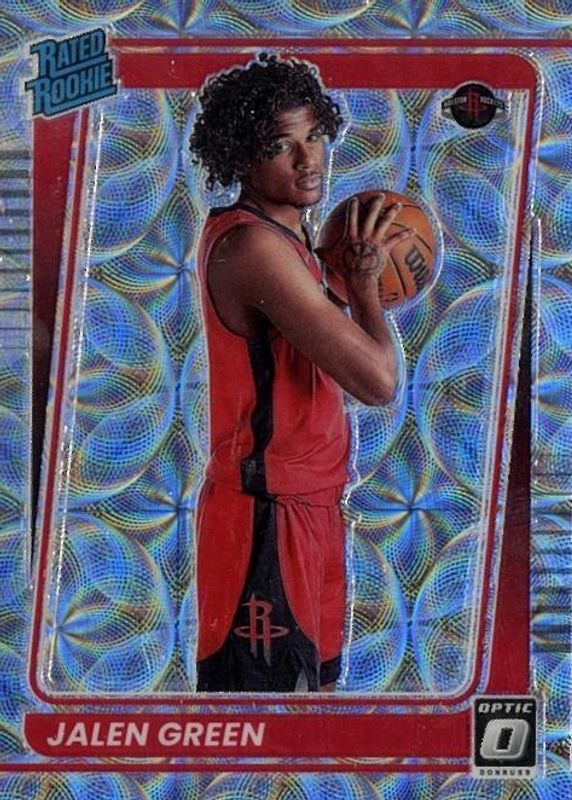 This card is 1 of 106 Jalen Green's card variations in the 2021 Optic set being tracked by Sports Card Investor, including Base, Blue Pulsar, Blue Velocity, Checkerboard, and Choice.