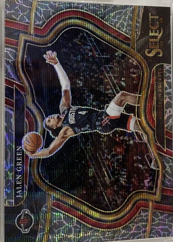 This card is 1 of 8 Jalen Green's card variations in the 2022 Select set being tracked by Sports Card Investor, including Courtside Cosmic /(SSP), Courtside Tiger /(SSP), Courtside Zebra /(SSP), Select Numbers - Gold /10, and Unstoppable - Gold /10.
