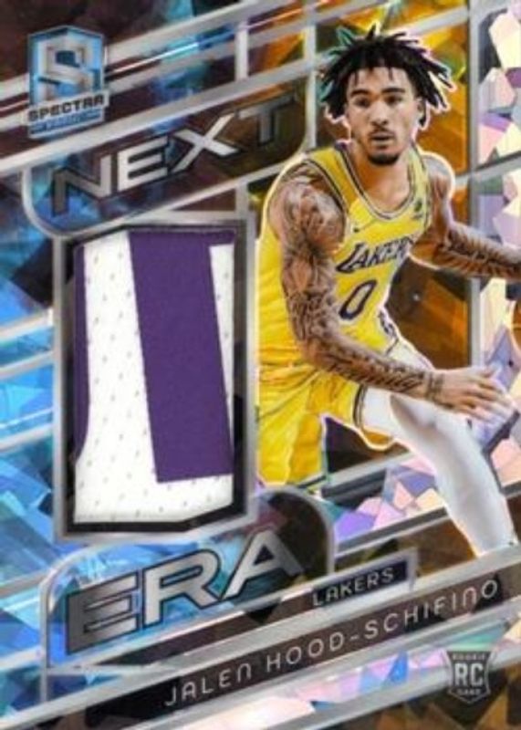 The Jalen Hood-Schifino 2023 Spectra #NEX-JHS Next Era - Astral /49 Rookie card is 1 of 45 Jalen Hood-Schifino's card variations in the 2023 Spectra set being tracked by Sports Card Investor, including Base, International, International Black & White, International Red, and Menagerie.
