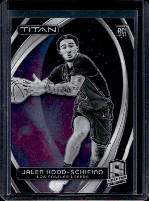 The Jalen Hood-Schifino 2023 Spectra #3 Titan Rookie card is 1 of 45 Jalen Hood-Schifino's card variations in the 2023 Spectra set being tracked by Sports Card Investor, including Base, International, International Black & White, International Red, and Menagerie.