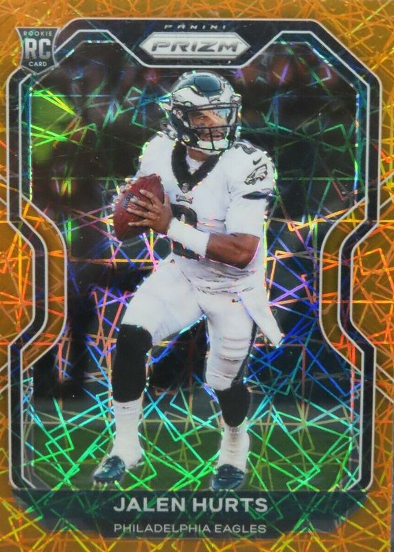 Jalen Hurts' Football cards are available in at least 130 sets. Jalen Hurts' biggest 7-day price movers are 2020 Chronicles #PA-5 Panini, 2020 Prizm #12 Emergent - Green, and 2020 Select #25 Turbocharged - Silver.