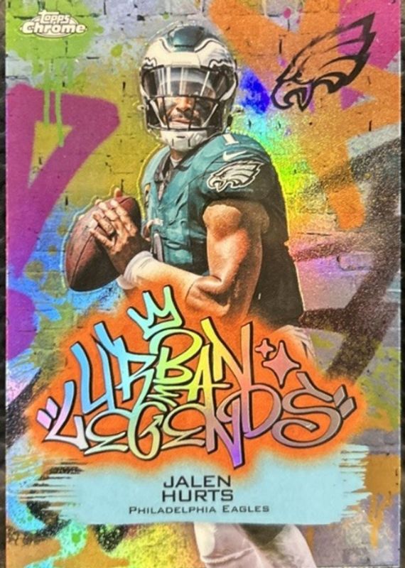 Jalen Hurts' Football cards are available in at least 144 sets. Jalen Hurts' biggest 7-day price movers are 2020 Mosaic #265 NFL Debut - Silver, 2020 Chronicles #PA-5 Panini, and 2020 Chronicles #GK-5 Gridiron Kings.