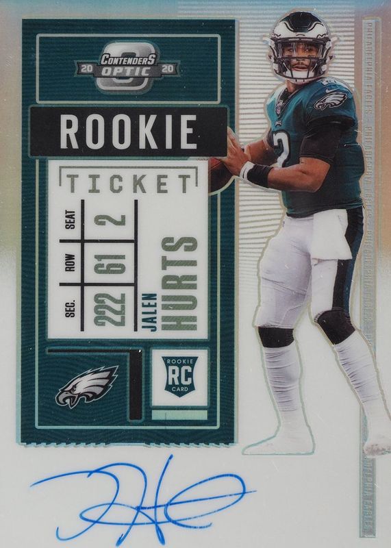 2020 Contenders Optic Jalen Hurts Silver Rookie Ticket On Card Auto #122 Mint