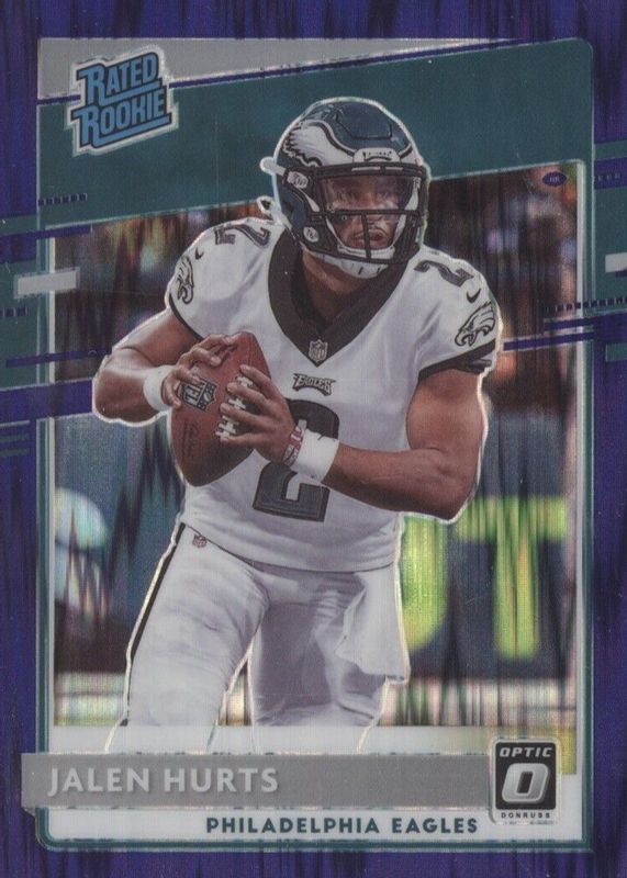 JALEN HURTS 2020 DONRUSS OPTIC RATED ROOKIE PURPLE SHOCK PRIZM RC Q5159