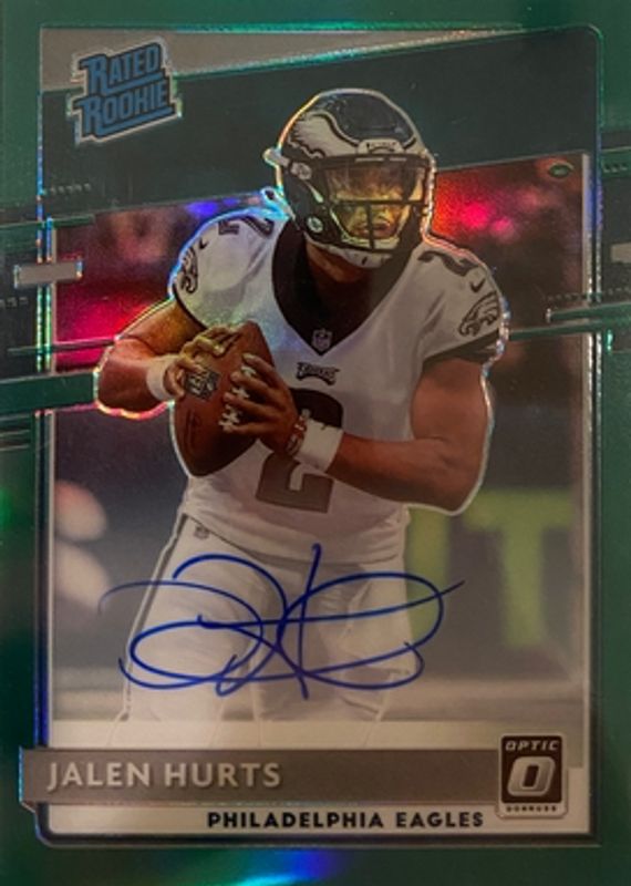 Jalen Hurts 2020 Optic #164 Rated Rookie Autographs - Green /5 RAW Price Guide