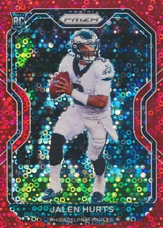 2020 Prizm Jalen Hurts No Huddle Red Disco /50 Rookie RC #343 Eagles