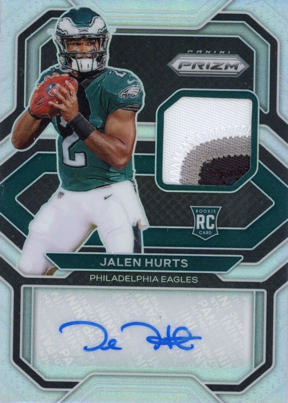 2020 Panini Prizm #12 Jalen Hurts RC Patch Auto Silver 20/99 Philadelphia Eagles