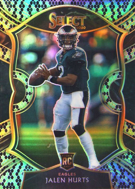 Jalen Hurts 2020 Select #50 Concourse Green & Black Snakeskin /2 Rookie RAW Price Guide