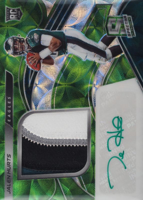 2020 PANINI SPECTRA JALEN HURTS ROOKIE PATCH AUTO NEON GREEN /50 #211