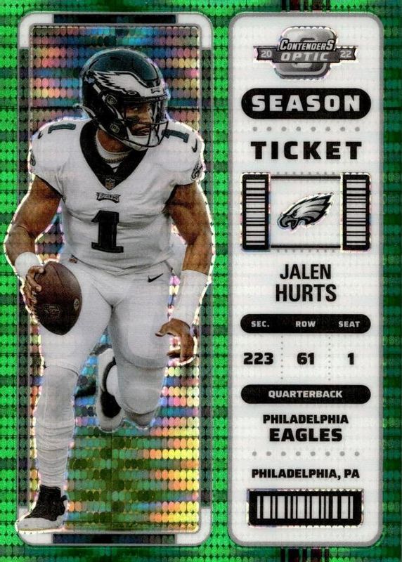 2022 Panini Contenders Optic Season Ticket Green Pulsar #43 Jalen Hurts 14/30