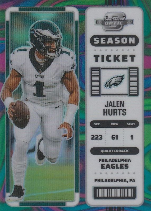 Jalen Hurts 2022 Contenders Optic #43 Neon Marble /4 RAW Price Guide