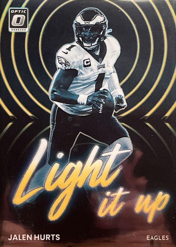 2022 DONRUSS OPTIC JALEN HURTS LIGHT IT UP Gold PRIZM 5/10 SSP INSERT
