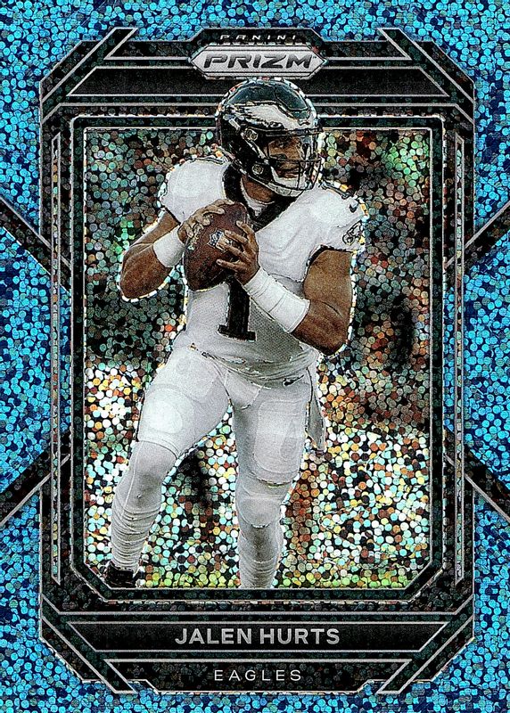 This card is 1 of 49 Jalen Hurts' card variations in the 2022 Prizm set being tracked by Sports Card Investor, including Green Ice, Light Blue, Orange Ice, Silver, and Pandora /400.