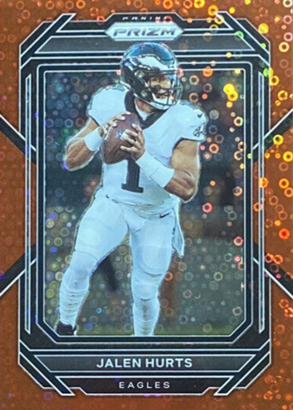 This card is 1 of 49 Jalen Hurts' card variations in the 2022 Prizm set being tracked by Sports Card Investor, including Green Ice, Light Blue, Orange Ice, Silver, and Pandora /400.
