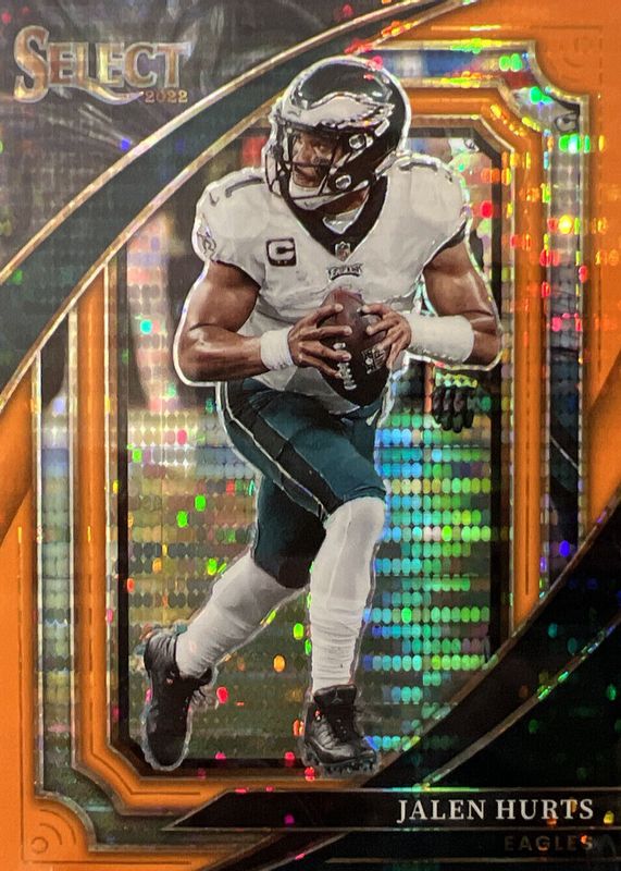 Best Prices Available For Sale of Jalen Hurts 2022 Select #307 Suite Level Neon Orange Pulsar /7