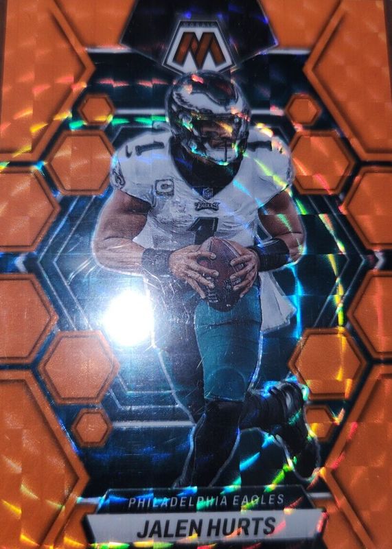 Best Prices Available For Sale of Jalen Hurts 2023 Mosaic #192 Orange Fluorescent /25