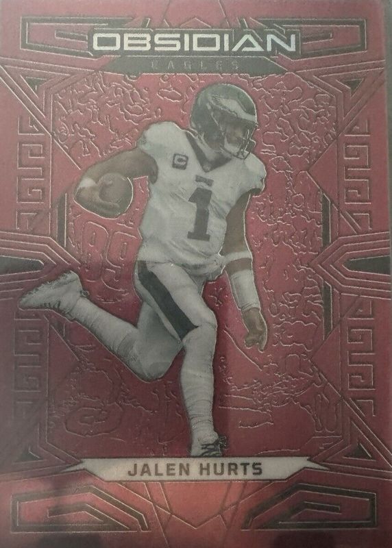 The Jalen Hurts 2023 Obsidian #81 Electric Etch Red Flood /90 card in Raw condition has not changed in price in the last 30 days and was last sold for $24.99 .