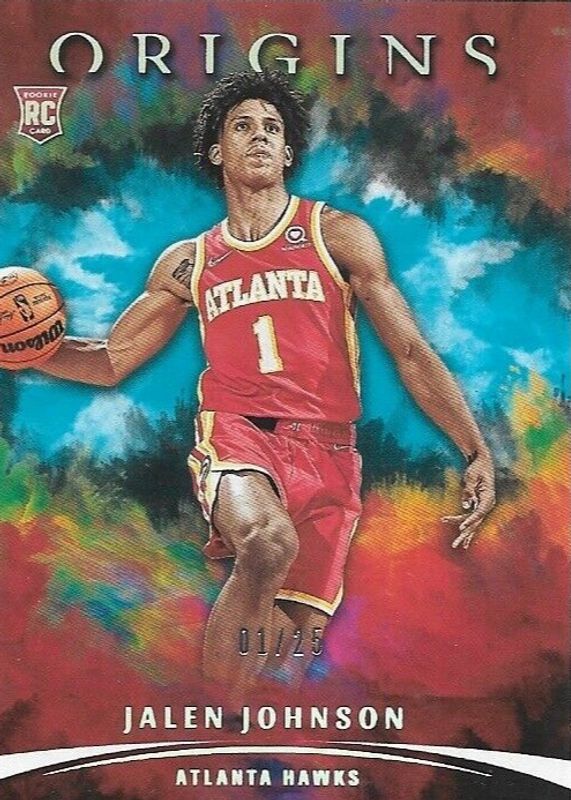This card is 1 of 39 Jalen Johnson's card variations in the 2021 Origins set being tracked by Sports Card Investor, including Base, Red, Blue /99, Orange /75, and Pink /60.