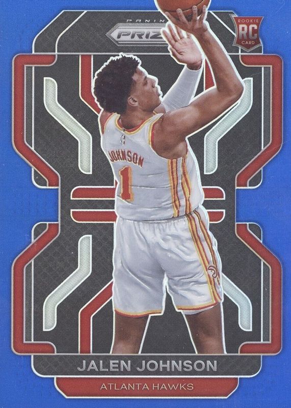 The Jalen Johnson 2021 Prizm #305 Blue /199 Rookie card in Raw condition has moved down -$64.50 (-34.0%) in the last 30 days and was last sold for $125.00 .