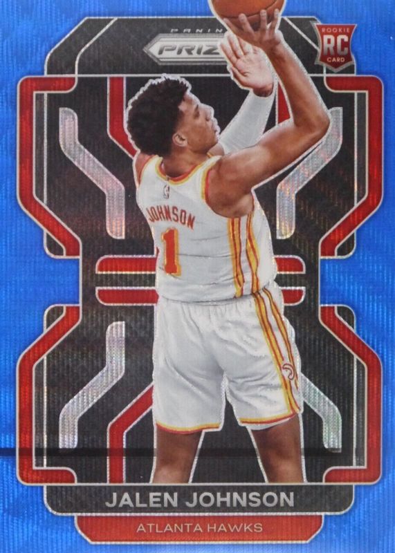 The Jalen Johnson 2021 Prizm #305 Blue Wave Rookie card in Raw condition has moved down -$1.99 (-10.0%) in the last 30 days and was last sold for $18.00 .