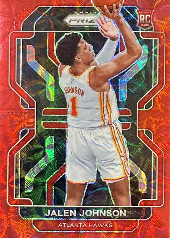 The Jalen Johnson 2021 Prizm #305 Choice Red /88 Rookie card in Raw condition has moved up $66.50 (+79.2%) in the last 30 days and was last sold for $150.50 .