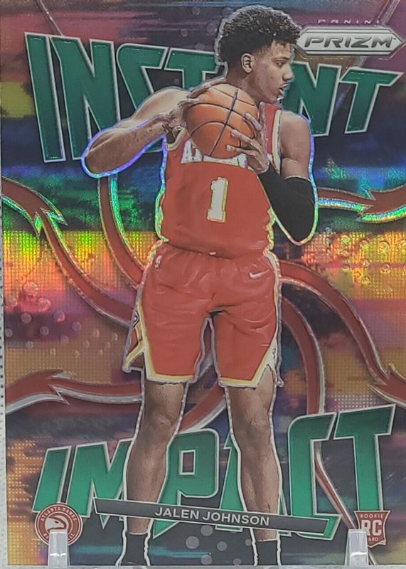 The Jalen Johnson 2021 Prizm #23 Instant Impact - Green Rookie card in Raw condition has moved up $8.74 (+699%) in the last 30 days and was last sold for $9.99 .