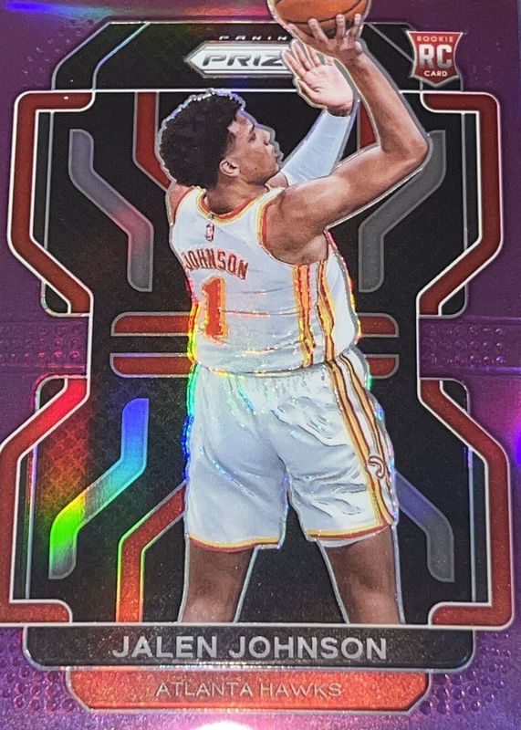 The Jalen Johnson 2021 Prizm #305 Purple /99 Rookie card in Raw condition has not changed in price in the last 30 days and was last sold for $73.50 .