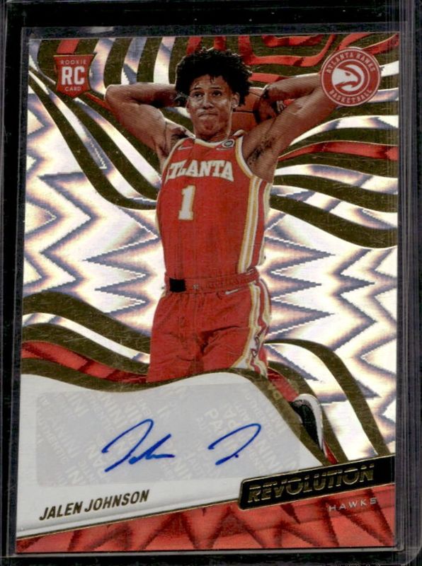 The Jalen Johnson 2021 Revolution #RA-JJN Rookie Autograph - Fractal /100 card is 1 of 29 Jalen Johnson's card variations in the 2021 Revolution set being tracked by Sports Card Investor, including Base, Asia Red, Astro, Chinese New Year, and Fractal.