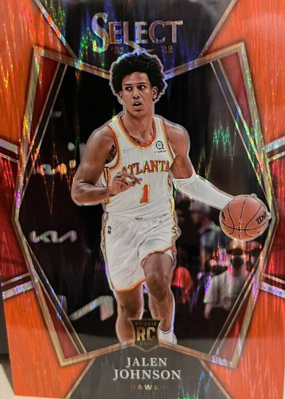 Jalen Johnson 21-22 Select RC Premier Level Orange Flash Prizm RC Atlanta Hawks