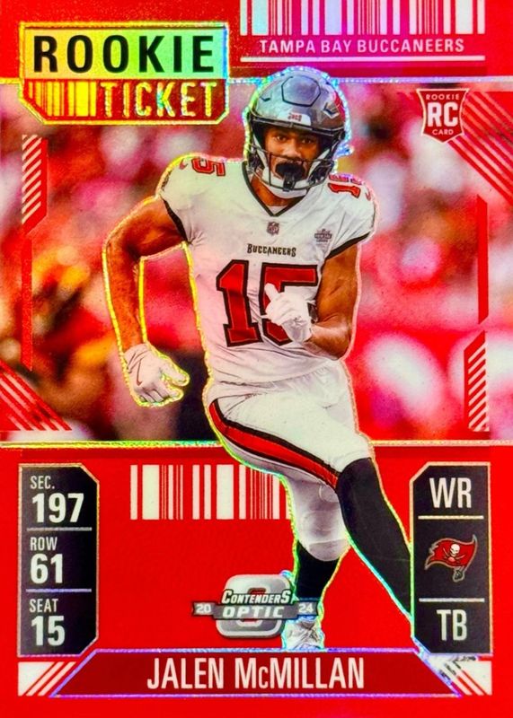 2024 Optic Contenders Jalen McMillan Red Color Match Rookie Ticket /199 #72