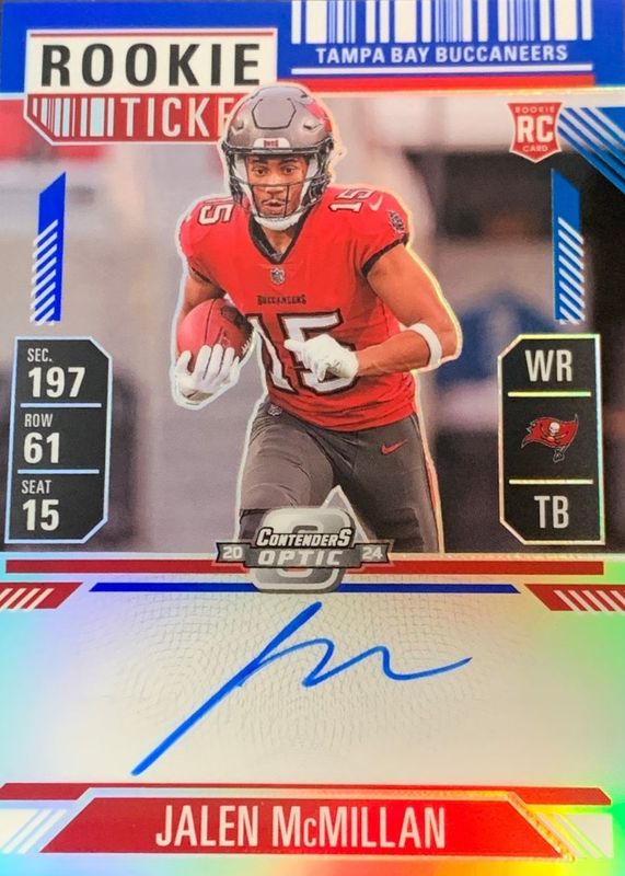 2024 Contenders Optic Jalen McMillan Blue Rookie Ticket On Card Auto Auto /75