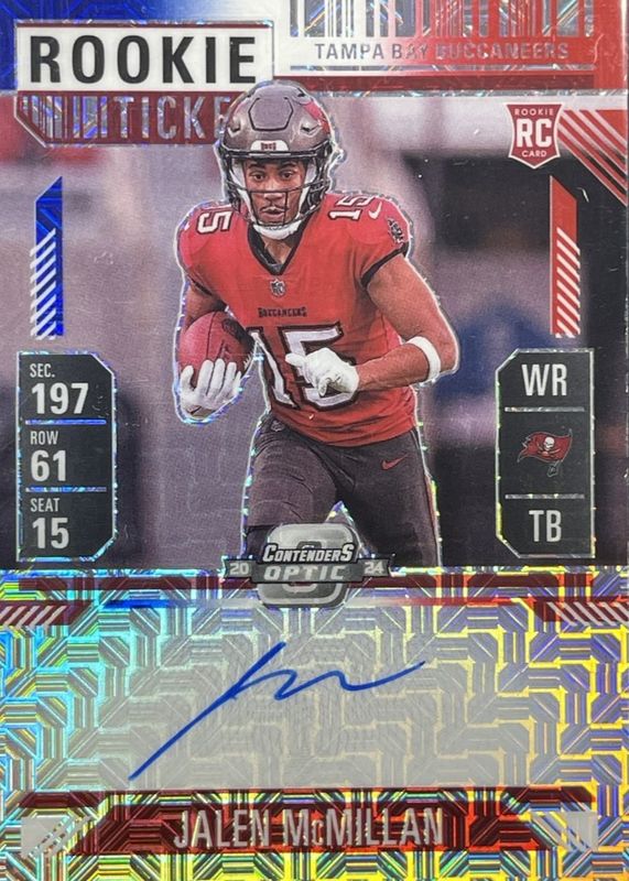 Best Prices Available For Sale of Jalen McMillan 2024 Contenders Optic #131 Rookie Ticket Auto - Red White Blue /13