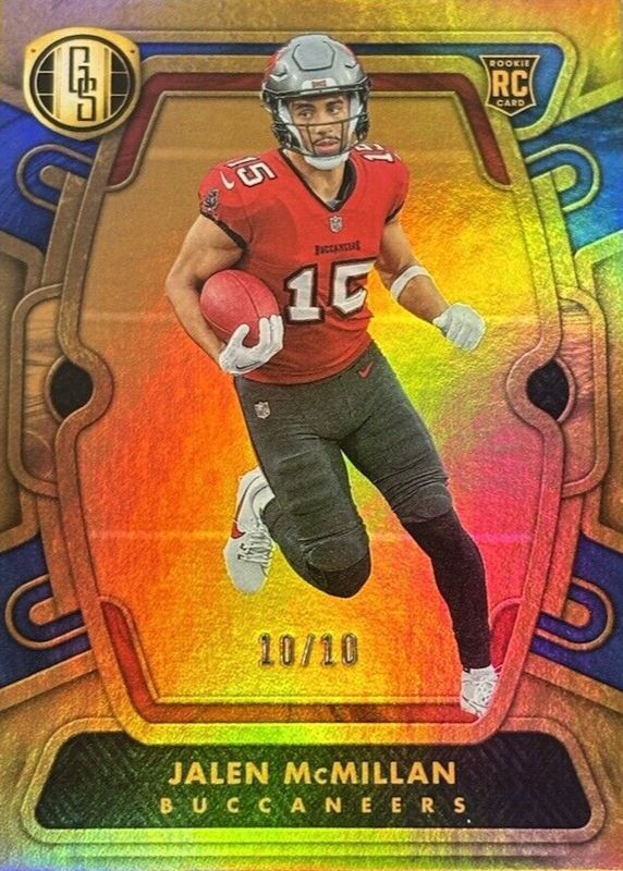 This card is 1 of 20 Jalen McMillan's card variations in the 2024 Gold Standard set being tracked by Sports Card Investor, including Base /99, Platinum /75, White Gold /65, Citrine /40, and Rose Gold /40.