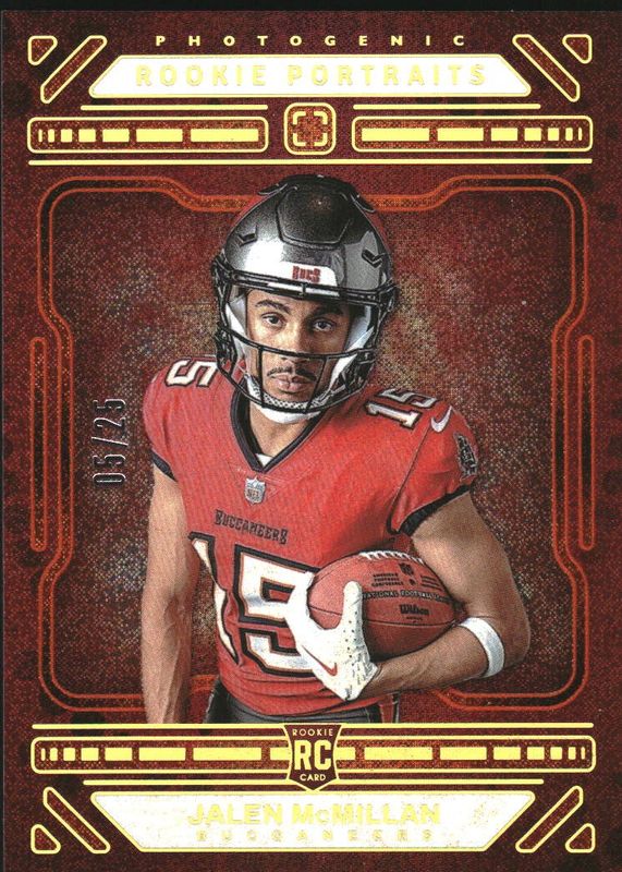 The Jalen McMillan 2024 Photogenic #167 Rookie Portraits - Orange /25 card in Raw condition has not changed in price in the last 30 days and was last sold for $20.00 .