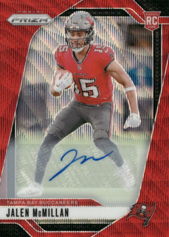 The Jalen McMillan 2024 Prizm #338 Rookie Autographs - Red Wave /149 card in Raw condition has not changed in price in the last 30 days and was last sold for $25.00 .