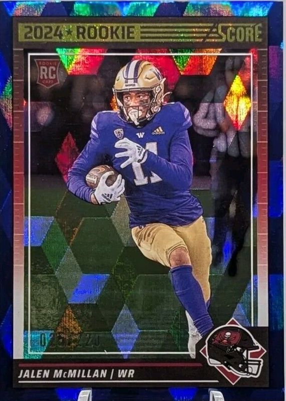 This card is 1 of 25 Jalen McMillan's card variations in the 2024 Score set being tracked by Sports Card Investor, including Base, Gold, Green, Orange, and Purple.